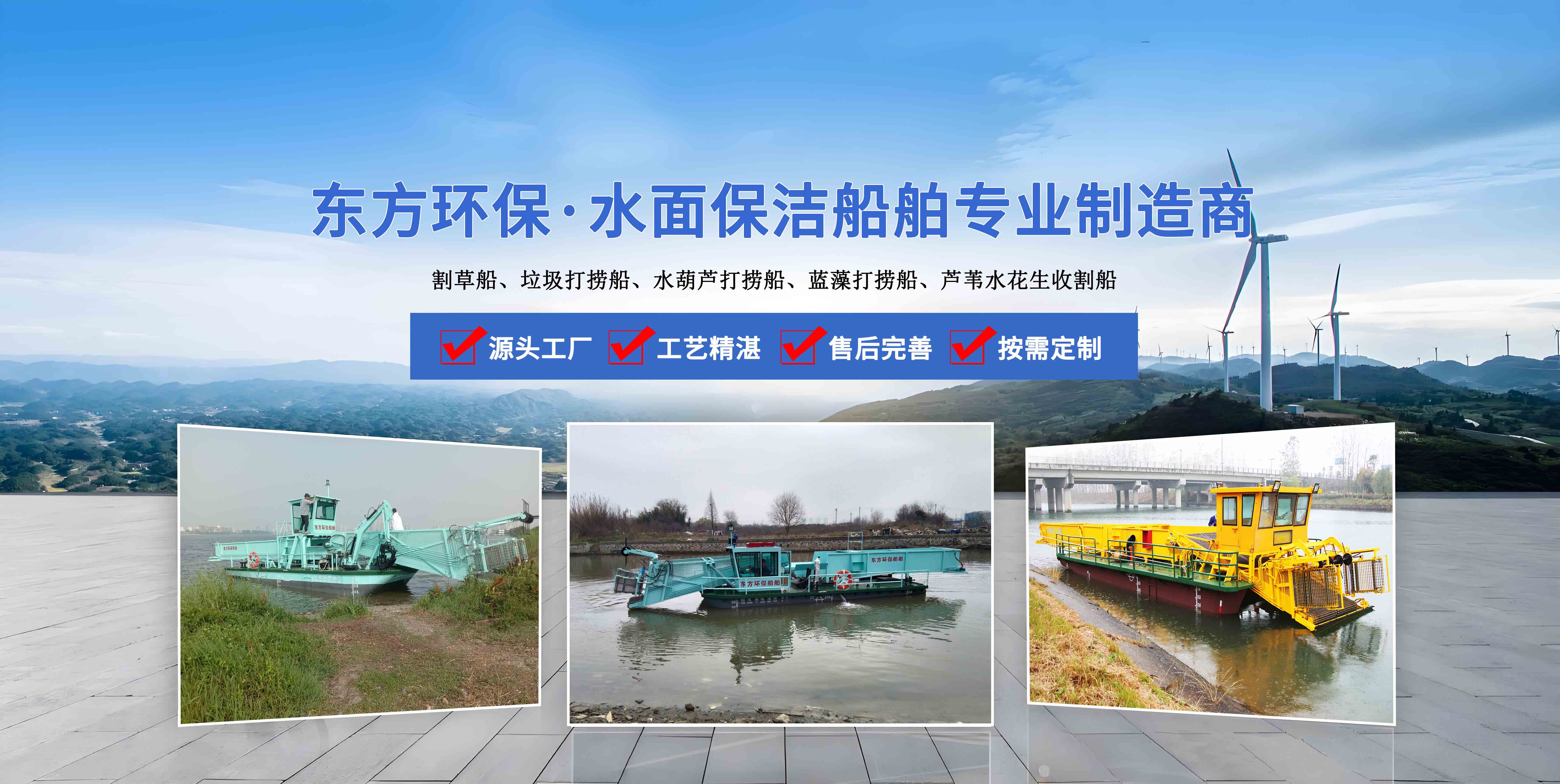 青州市東方環(huán)保機(jī)械制造有限公司位于山東省青州市,地理位置得天獨(dú)厚,是水面保潔船、水草收割船、、清漂船、滸苔打撈船、藍(lán)藻打撈船等水面船體的專(zhuān)業(yè)制造銷(xiāo)售廠(chǎng)家, 公司成立于2006年,公司先后與山東省黃河造船廠(chǎng)、中船重工702研究所、青島海洋大學(xué)、渤海船舶職業(yè)學(xué)院等機(jī)構(gòu)建立了長(zhǎng)期合作關(guān)系.。